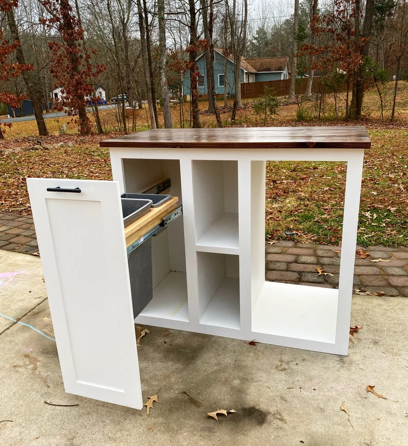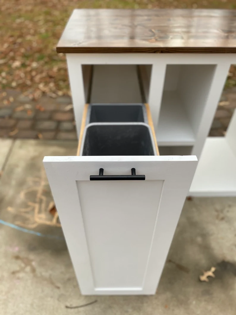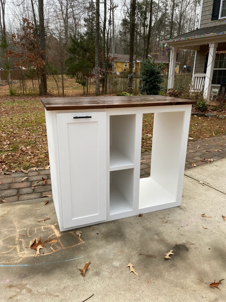 Wine lovers, customize your very own bar today. ! It’s beautiful and multi functional! Equipped with a built in rev a shelf pull out trash can. This console coffee bar/ Wine Bar is customizable according to your exact dimensions as well as your choice of finish to include paint and/or stain! The measurements for the pictured item are 60″ L x 20” W ” 38″ H. Customized to fit your needs based off dimensions and your mini fridge / wine fridge. Additional charges for larger pieces and fridges may occur. Custom paint requests not discussed prior to ordering are a $30 surcharge. Main photo is equipped with a White painted frame and espresso stained top, also customizable to your liking!
